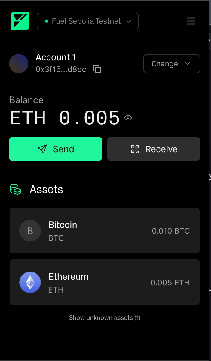 Fuel Wallet: Developed by the Fuel Network core team, this browser extension is the gateway to V12's functionalities. Users are required to download the extension to connect. For setup instructions, visit Fuel Wallet.